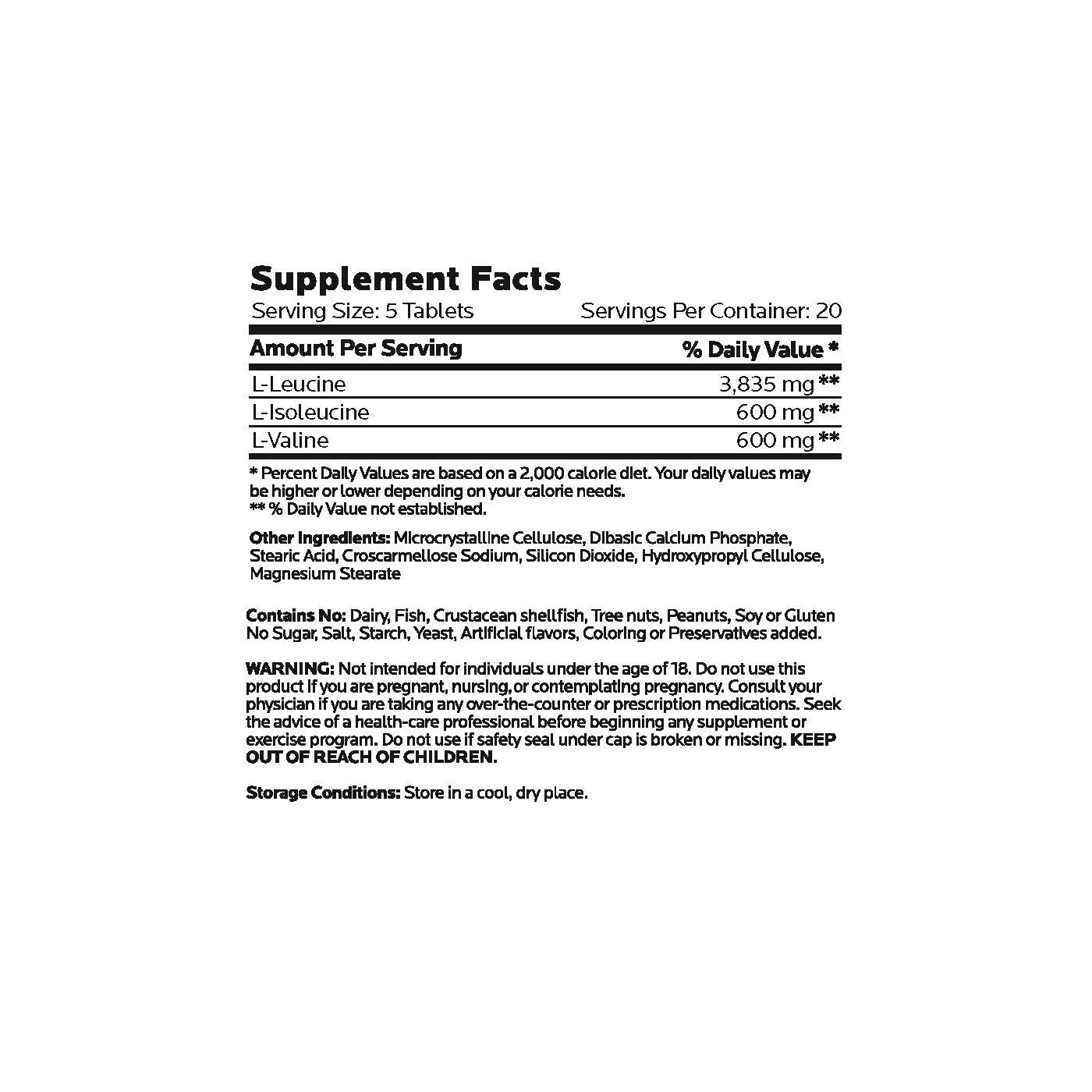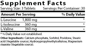 - Contains the CURRENT ideal ratio of branched chain amino acids - leucine, isoleucine and valine - in a convenient tablet form