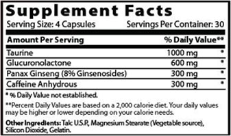 Directions: As a dietary supplement, take 4 capsules, 30 minutes before a workout with 8 oz. of water or your favorite beverage.