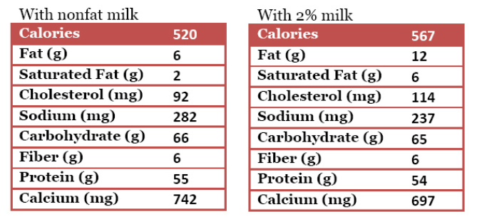 • 1  1/2 cup nonfat milk or 2% milk (or milk substitute of your choice)